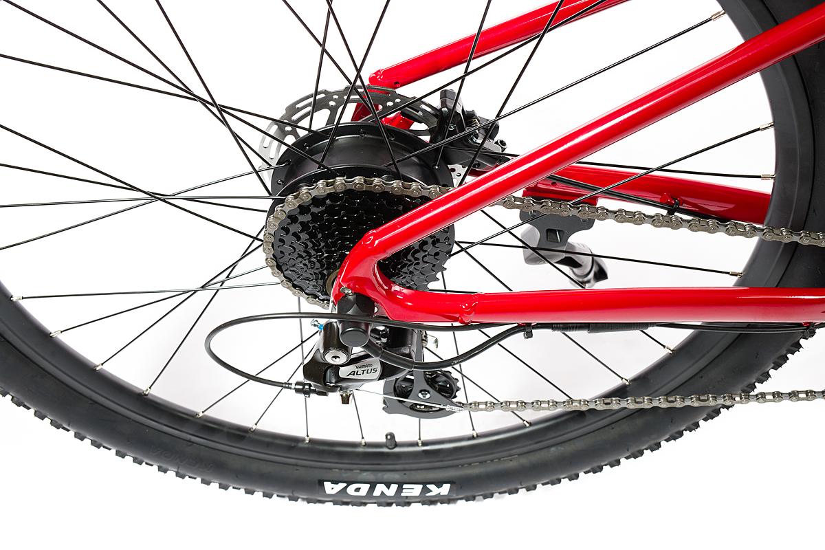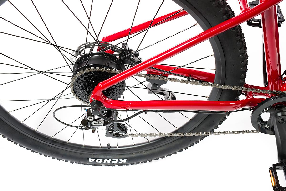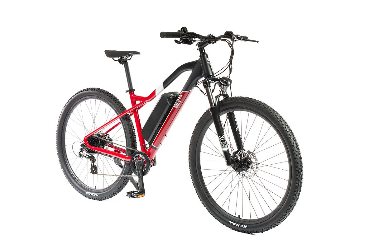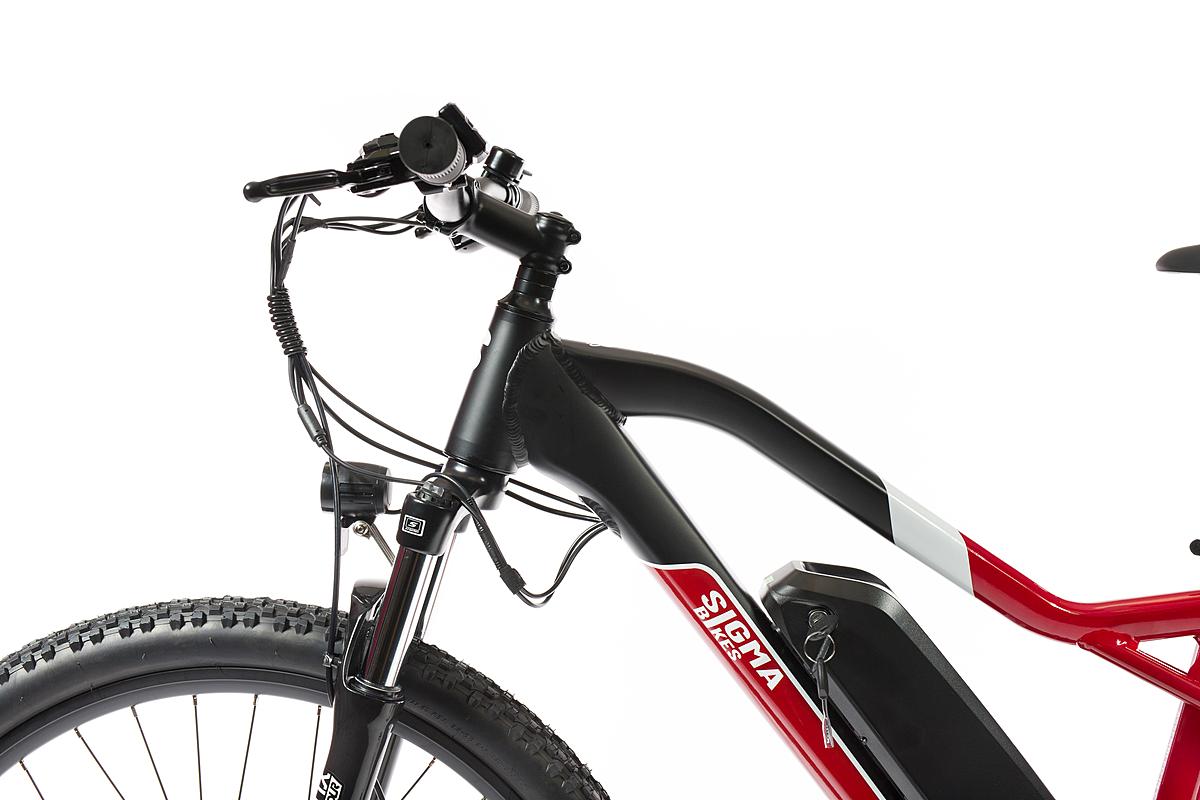 Dámské rekreační horské elektrokolo Sigma s motorem Sutto v zadním náboji, hliníkovým rámem a odpruženou přední vidlicí. Max. dojezd 100 km a kapacita baterie 375 Wh.