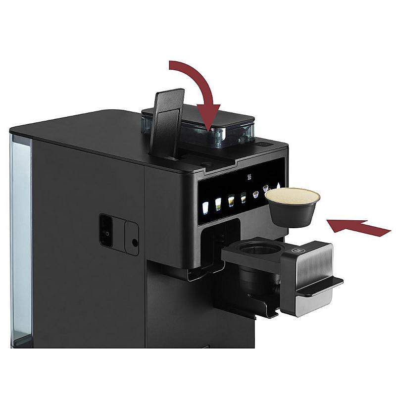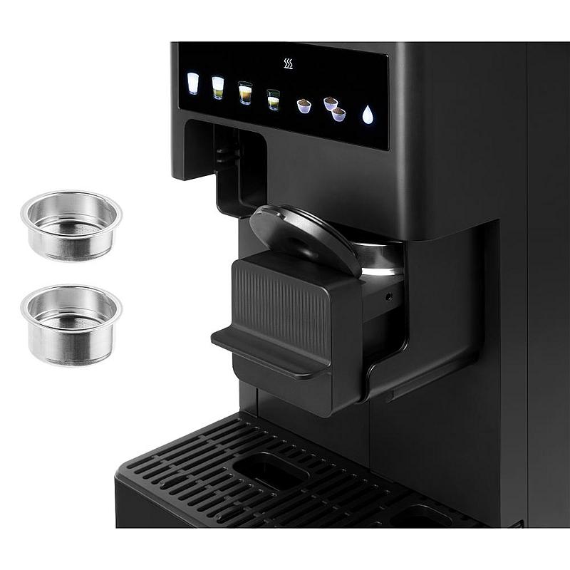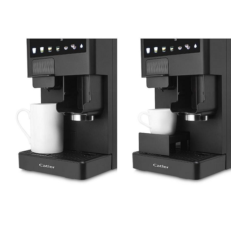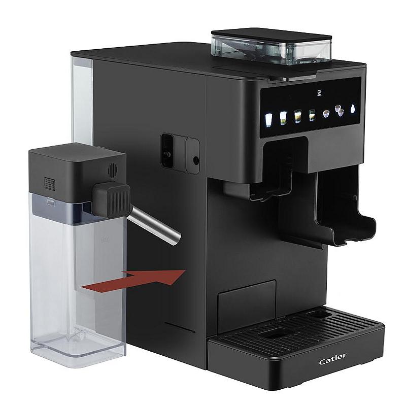 Kávovar na kapsle Catler se třemi adaptéry pro různé druhy kapslí a integrovaným kónickým mlýnkem pro použití kávových zrn.