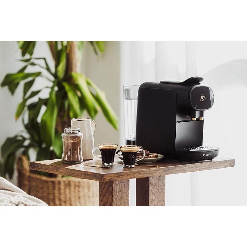 Kapslový kávovar L´Or s odnímatelným zásobníkem vody, technologií rozpoznání dvojitých kapslí a indikátorem odstranění vodního kamene.