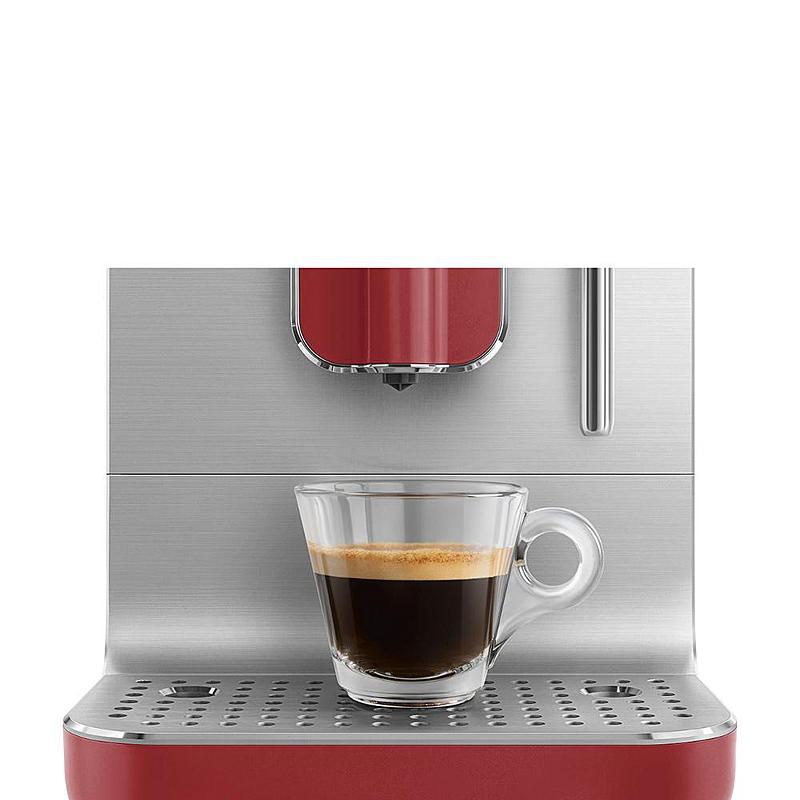 Automatický kávovar Smeg s parní tryskou, funkcí nahřívání šálků a příkonem 1350 W.
