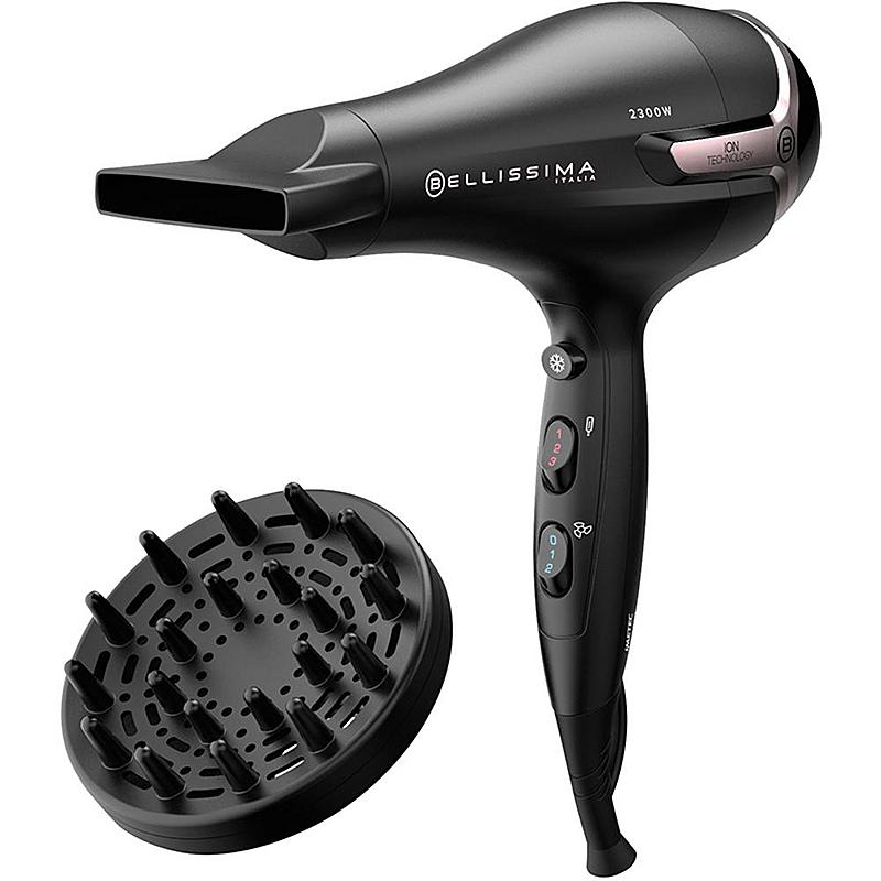 Vysoušeč vlasů Bellissima s iontovou technologií, regulací teploty a rychlosti a funkcí studeného vzduchu pro fixaci účesu.