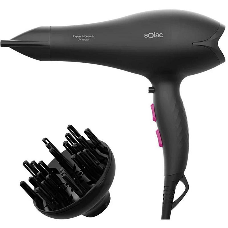 Fén na vlasy Solac se třemi teplotami, dvěma rychlostmi a ionizátorem.