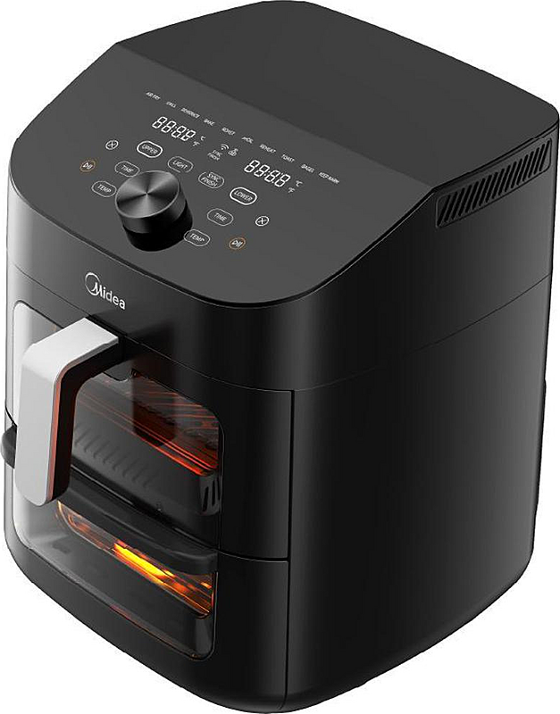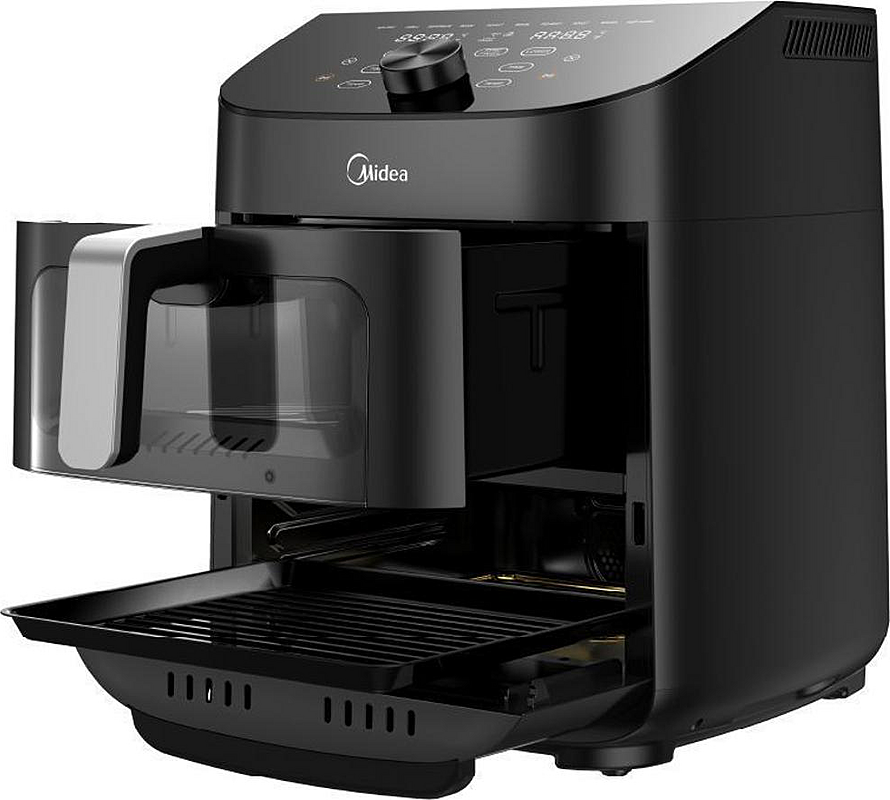 Horkovzdušná fritéza Midea s časovačem, deseti programy a dvěma koši.