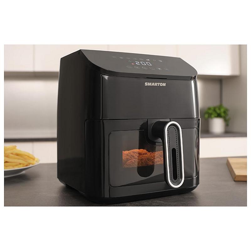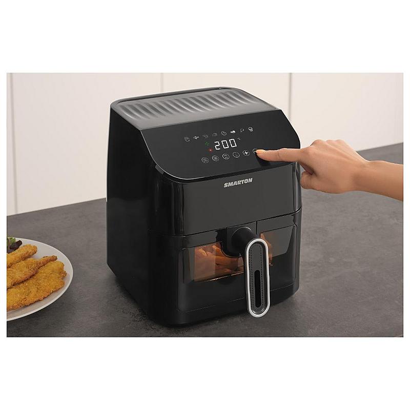 Horkovzdušná fritéza Smarton s 8 přednastavenými programy, objemem 4,5 l a časovačem.
