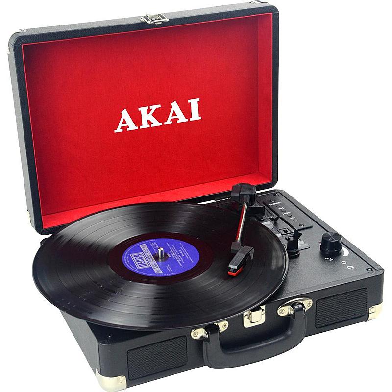 Kufříkový gramofon Akai s bluetooth a vestavěnými reproduktory.