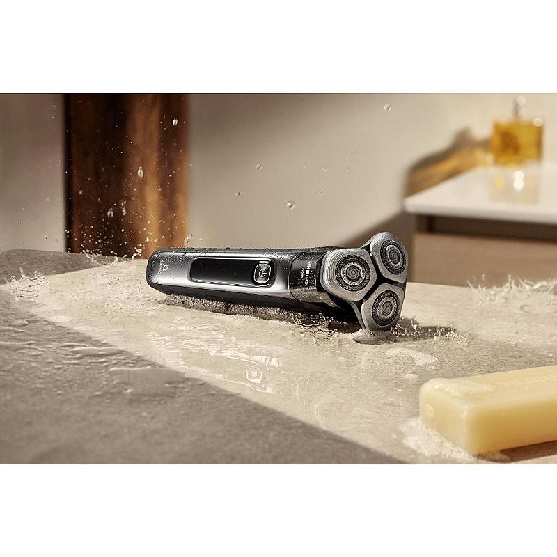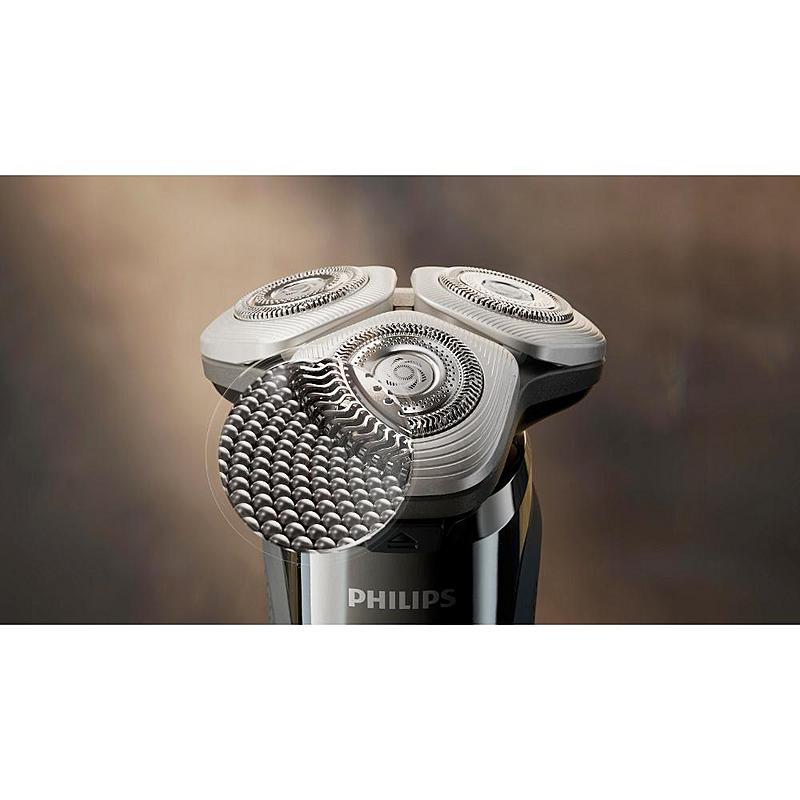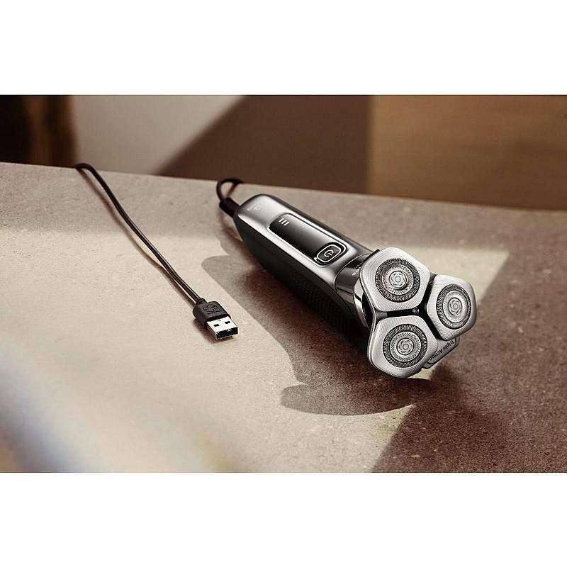 Frézkový holící strojek Philips s flexibilní holící hlavou, zastřihovačem a indikátorem nabíjení.