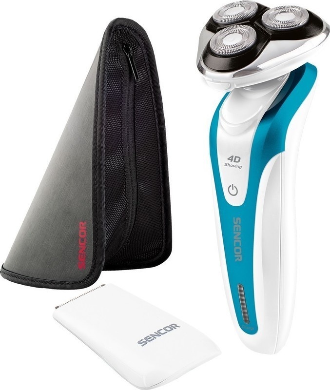 Holicí strojek Sencor s voděodolným tělem, třemi nezávisle výkyvními holicími hlavami a dobou provozu až 40 minut na jedno nabití.