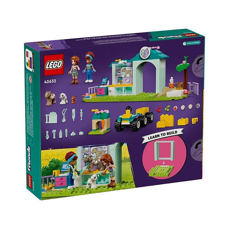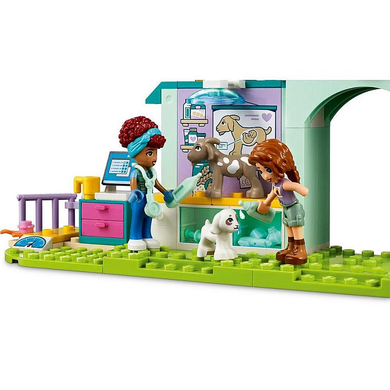 LEGO Friends Veterinární klinika pro zvířátka z farmy se 2 minipanenkami a 3 figurkami zvířat.