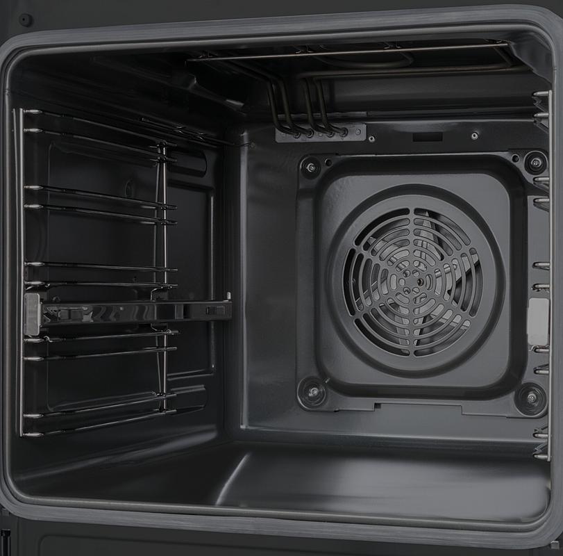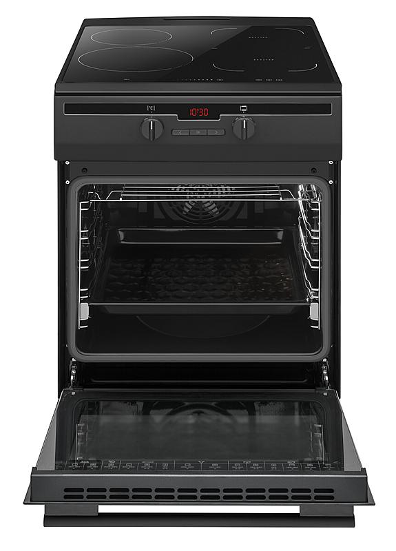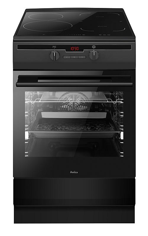 Indukční sporák Amica s 10 funkcemi trouby, indikátorem zbytkového tepla a časovačem.