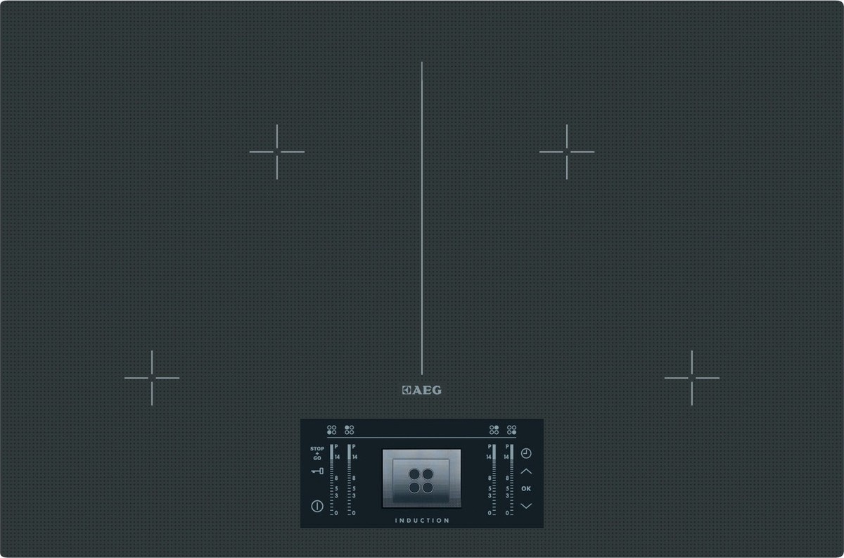 Indukční varná deska AEG s displejem, dotykovým ovládáním, časovačem a dětskou pojistkou.