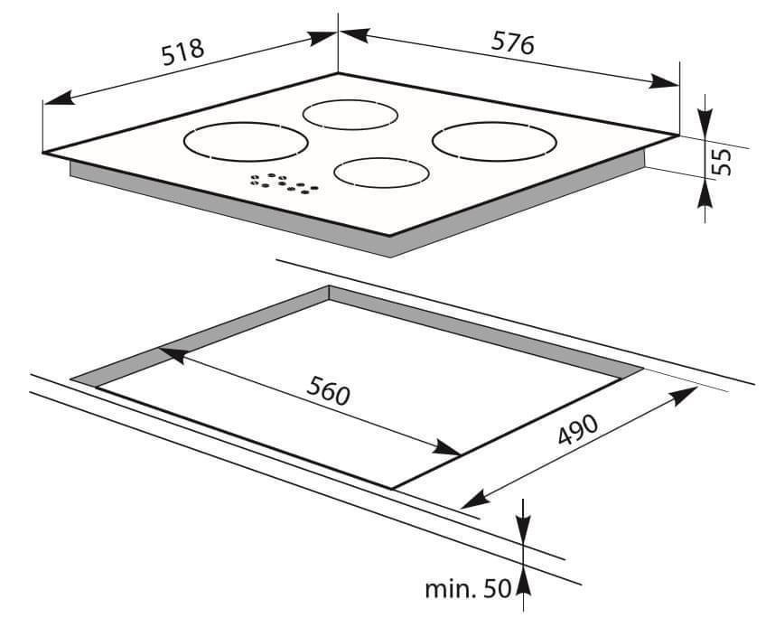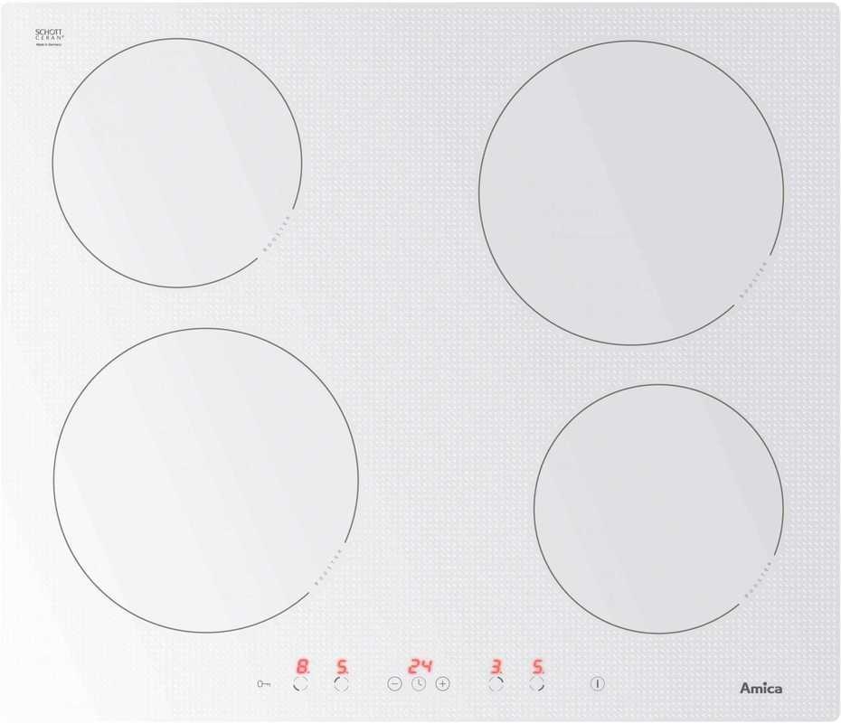 Indukční varná deska Amica se 4 varnými zónami, časovačem a ukazateli zbytkového tepla.