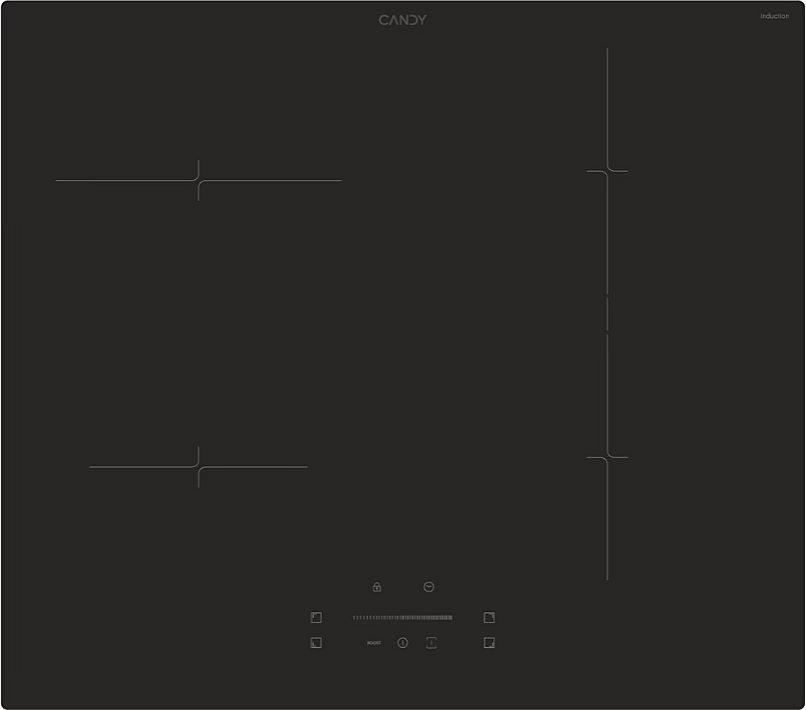 Indukční varná deska Candy s možností propojení dvou varných zón, časovačem a dětskou pojistkou.