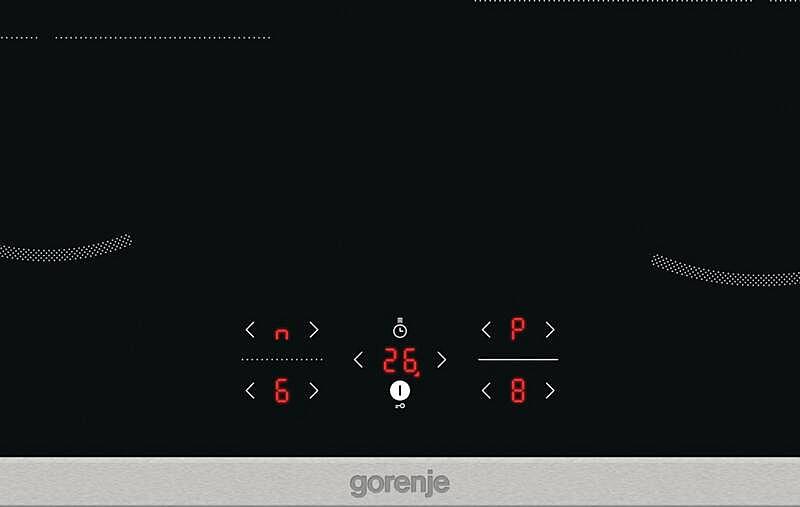 Indukční varná deska Gorenje s časovačem, ukazatelem zbytkového tepla, možností propojení dvou varných zón a dětskou pojistkou.