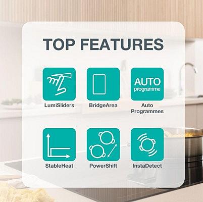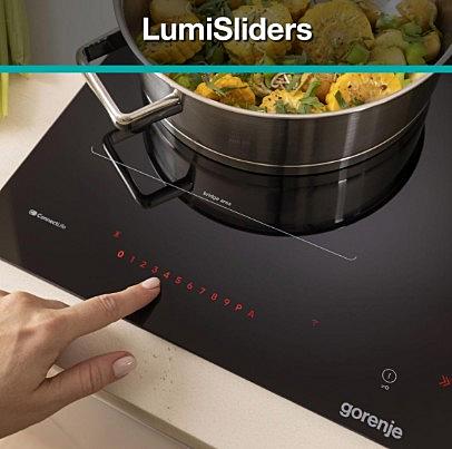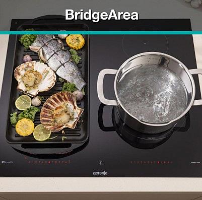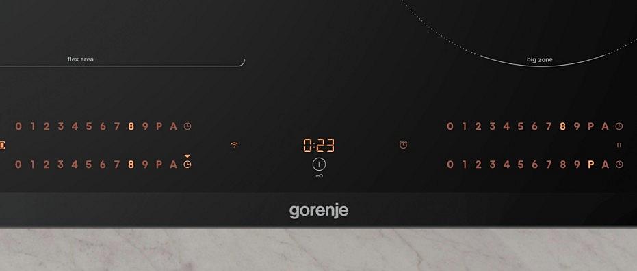 Indukční varná deska Gorenje s možností propojení dvou varných zón, časovačem a automatickými programy.