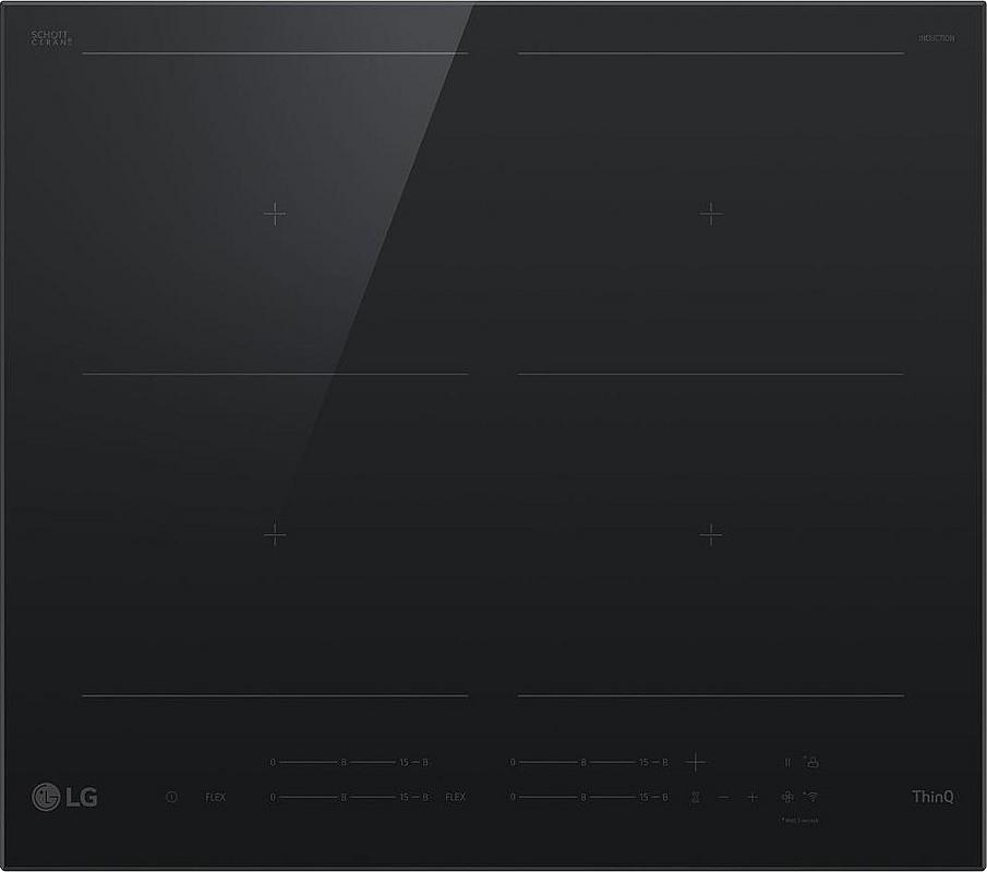 Indukční varná deska LG s Flexi zónami, časovačem a ukazatelem zbytkového tepla.