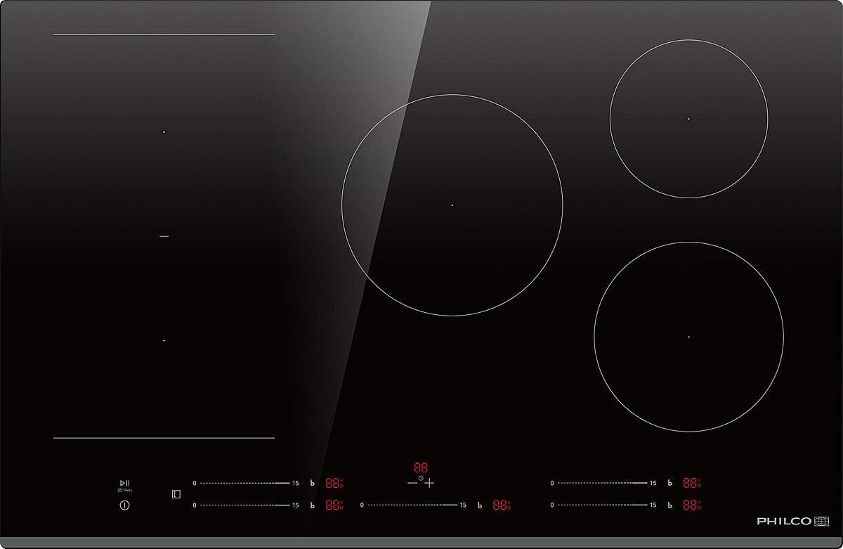 Indukční varná deska Philco s jednou obdelníkovou multizónou, časovačem a funkcí Booster pro zvýšení výkonu.
