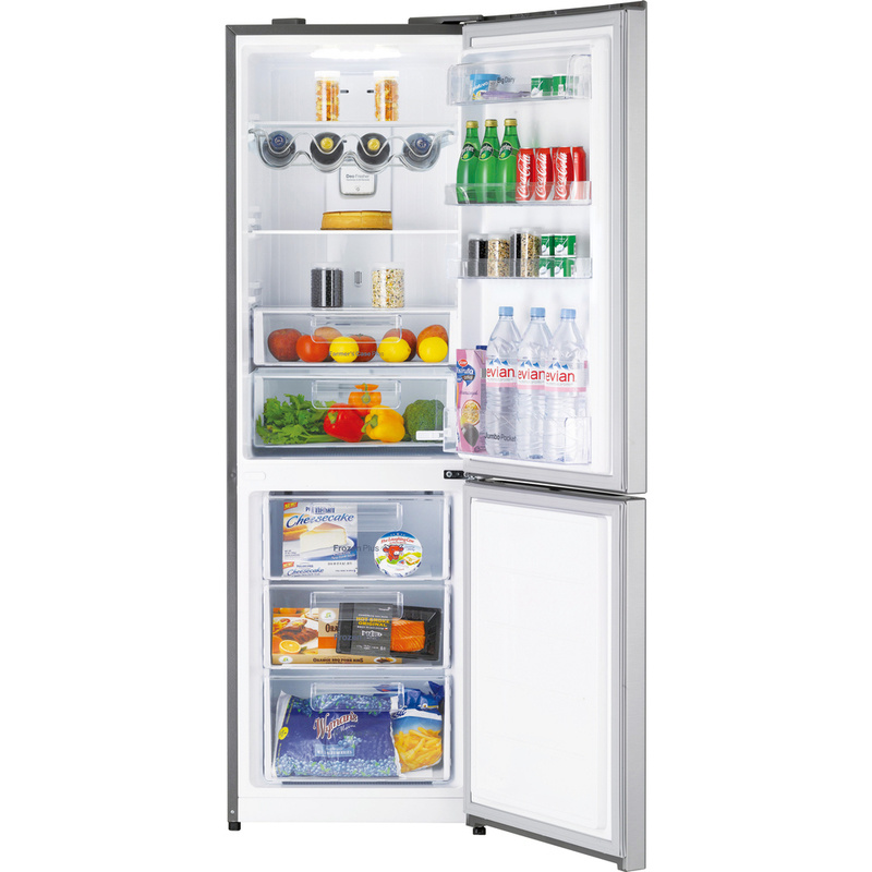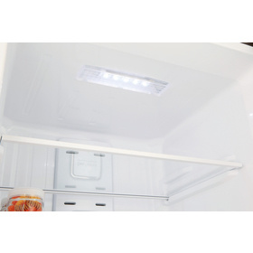 Kombinovaná beznámrazová chladnička Daewoo s cirkulací vzduchu Multi Air Flow, vnitřním LED osvětlením a zásuvkou na ovoce a zeleninu. Energetická třída A++, mrazící kapacita 4 kilogramy za 24 hodin a celkový objem 305 litrů.