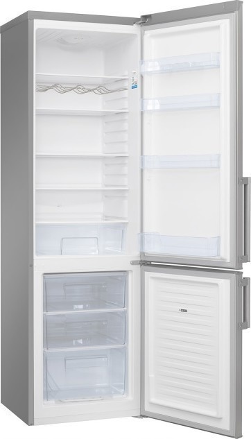Kombinovaná chladnička Amica s funkcí automatického odmrazovanání a antibakteriálně upraveným těsněním. Energetická třída A++, spotřeba energie 190 kWh za rok a celkový objem 252 litrů.