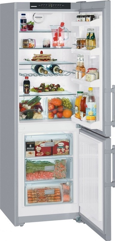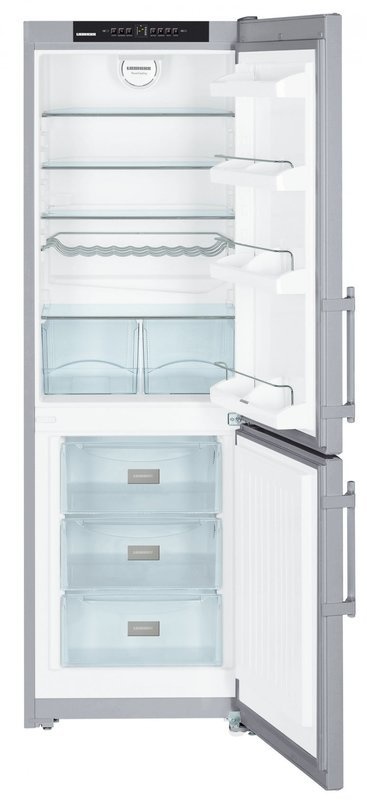 Kombinovaná lednice Liebherr s automatickým odmrazováním, LED diodami a zaměnitelným otevíráním dveří. Objem 317 litrů a energetická třída A++.
