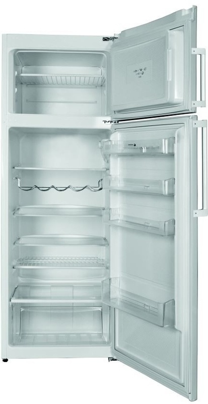 Kombinovaná lednice Fagor s mrazákem nahoře, skleněnými policemi a vnitřním LED osvětlením. Energetická třída A+++, celkový objem 302 litrů a mrazící výkon 3,5 kilogramů za 24 hodin.