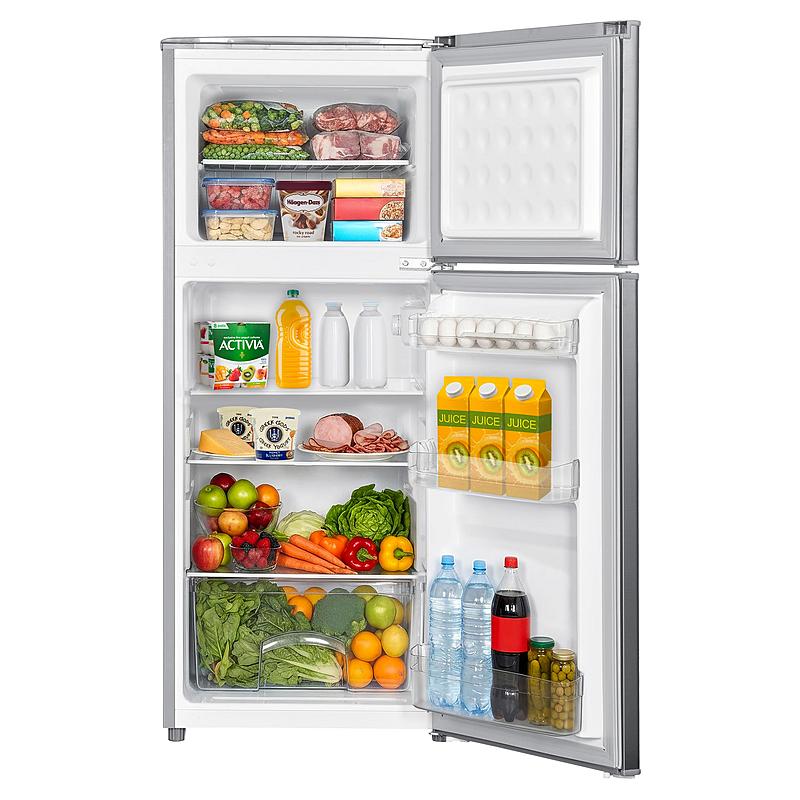 Dvoudveřová chladnička Philco s LED osvětlením, možností otočení dveří a celkovým objemem 151 l.