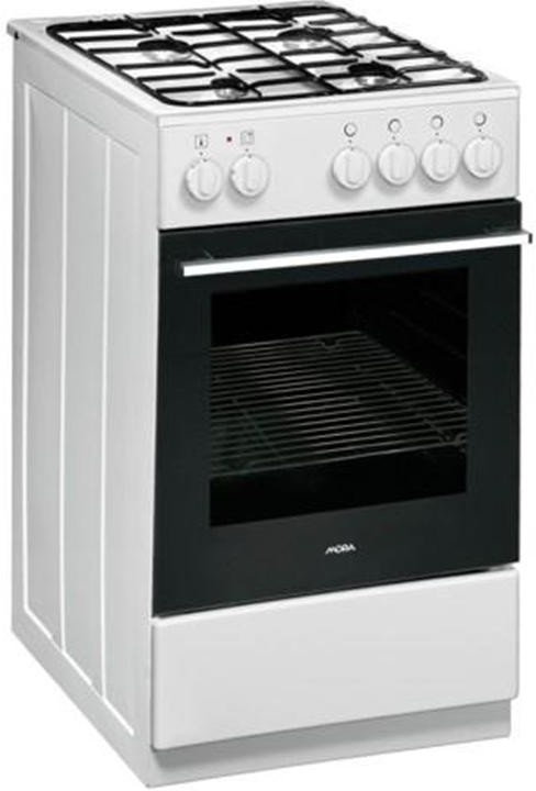 Kombinovaný sporák Mora v bílém provedení se 4 hořáky. Elektrické zapalování hořáků a EcoClean smalt.