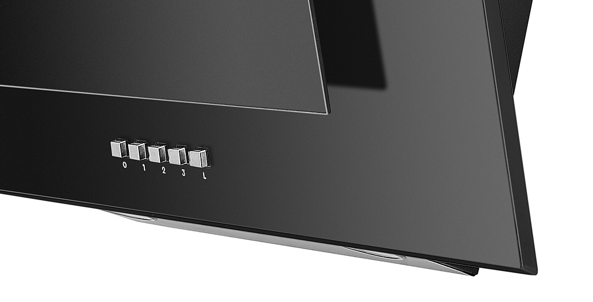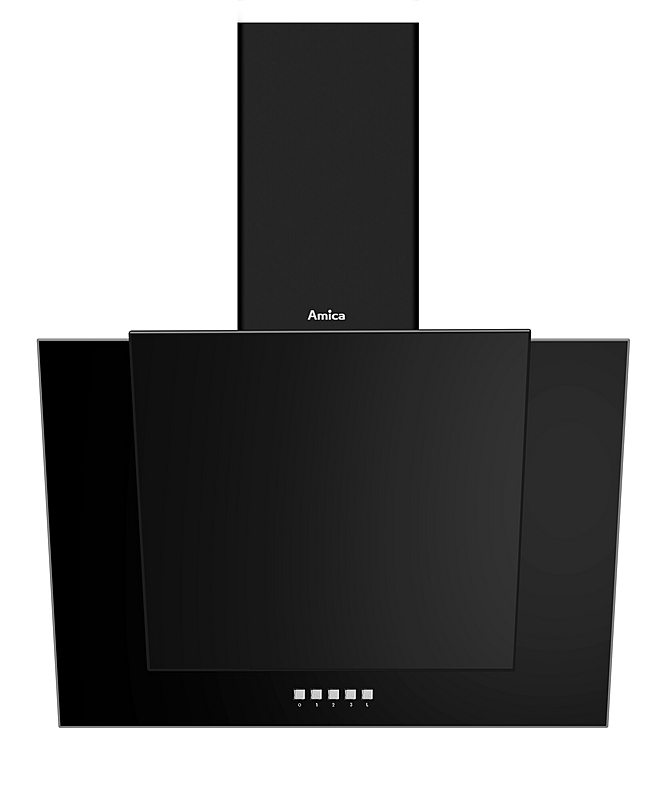 Komínový odsavač par Amica se třemi rychlostmi, LED osvětlením, tukovým filtrem, možností recirkulace a výkonem odsávání 254 m3 za hodinu.