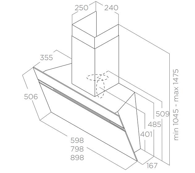 Komínový odsavač par Elica se 3 rychlostmi, LED osvětlením a výkonem 265 W.
