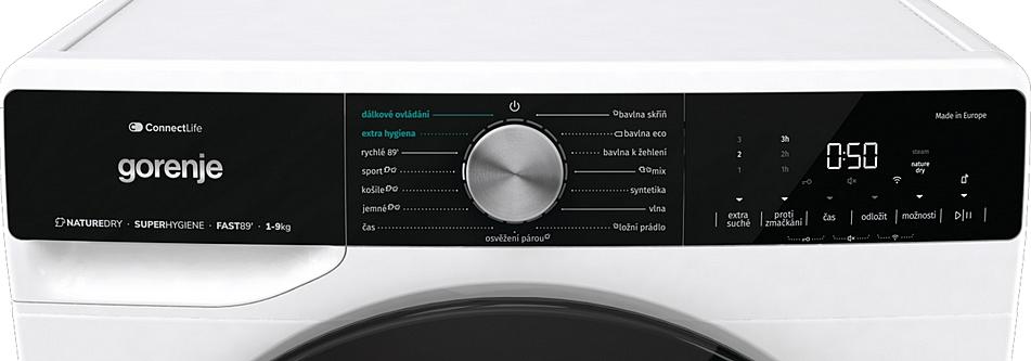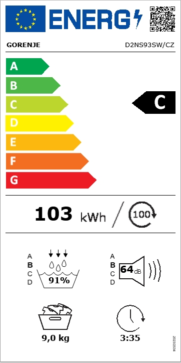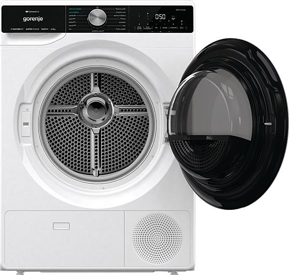 Kondenzační sušička prádla Gorenje s invertorovým motorem a senzorem vlhkosti. Energetická třída C, 15 programů a celková kapacita 9 kilogramů prádla.