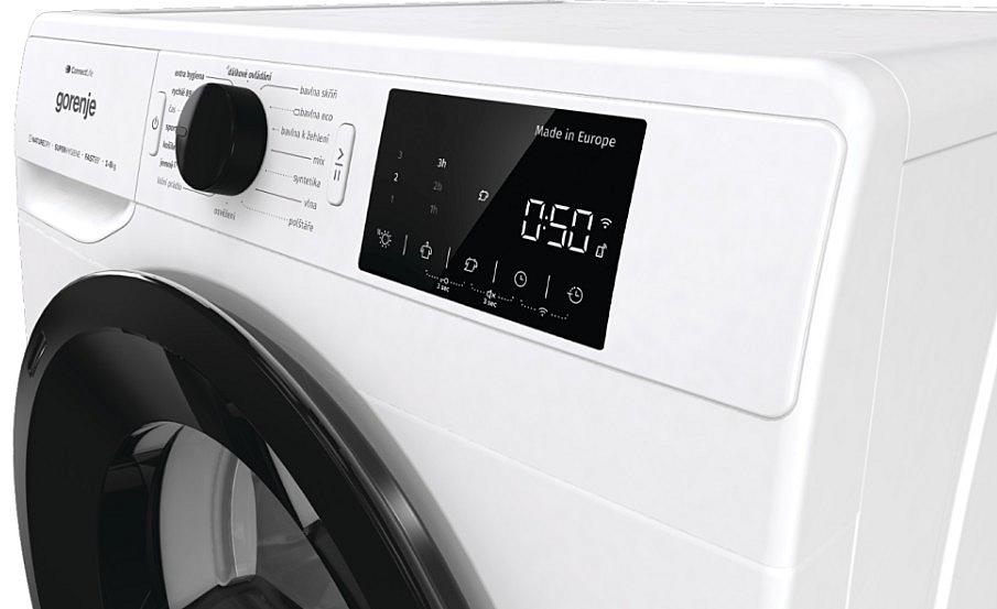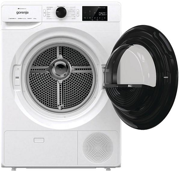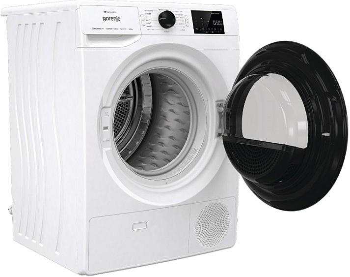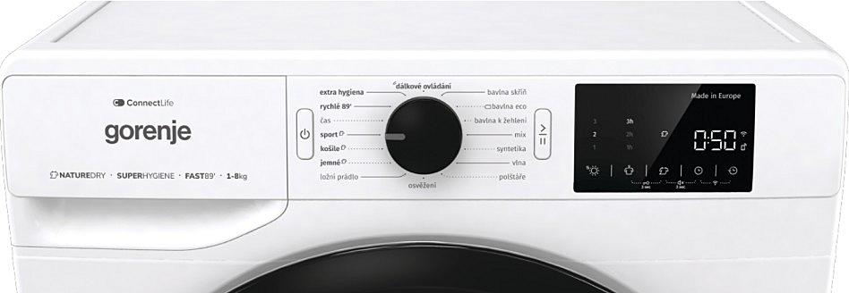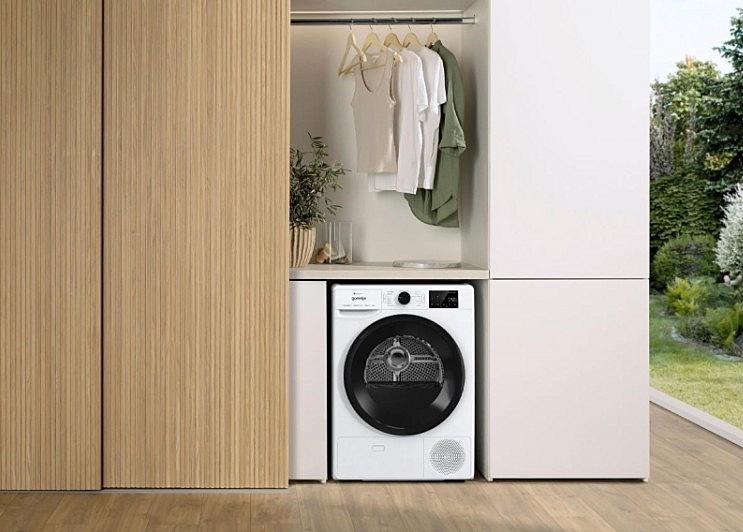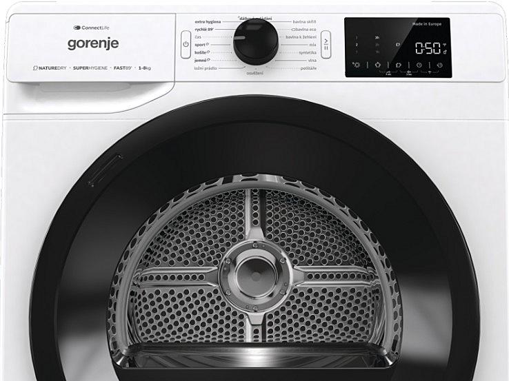 Kondenzační sušička Gorenje s tepelným čerpadlem, senzorem vlhkosti a možností ovládání přes WiFi. Kapacita 8 kg prádla a 16 programů.