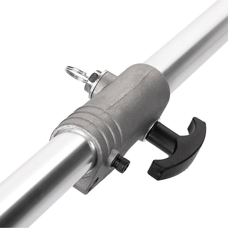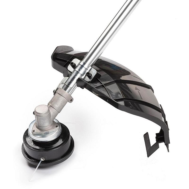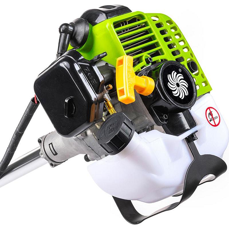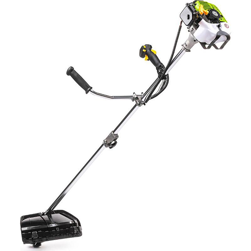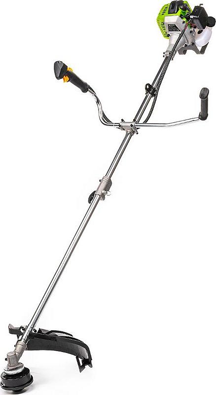 Benzínový křovinořez Fieldmann s dvoutaktním motorem, záběrem sečení 44 cm a nastavitelným ramenním popruhem.