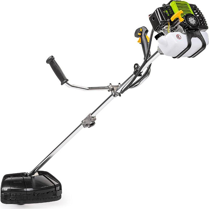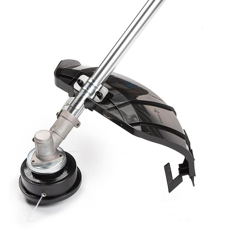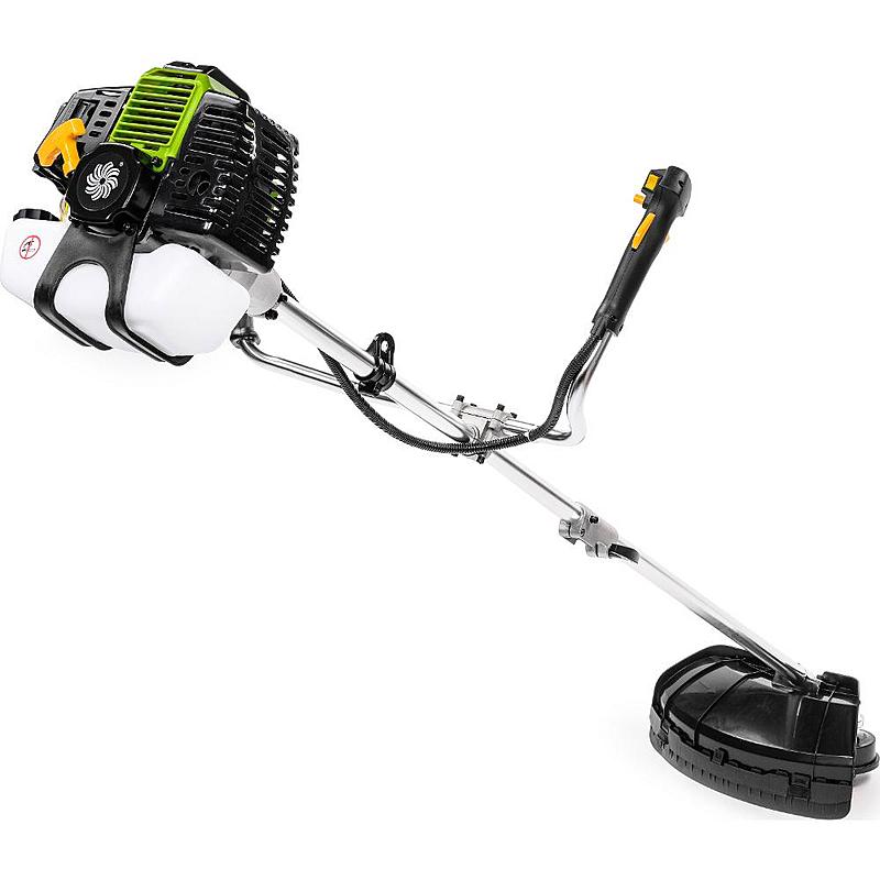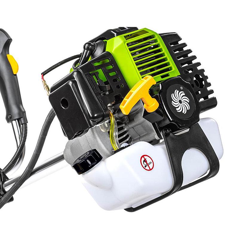 Benzinový křovinořez Fieldmann s poloautomatickou strunovou hlavou a dvojitou rukojetí s ergonomickými úchopy.