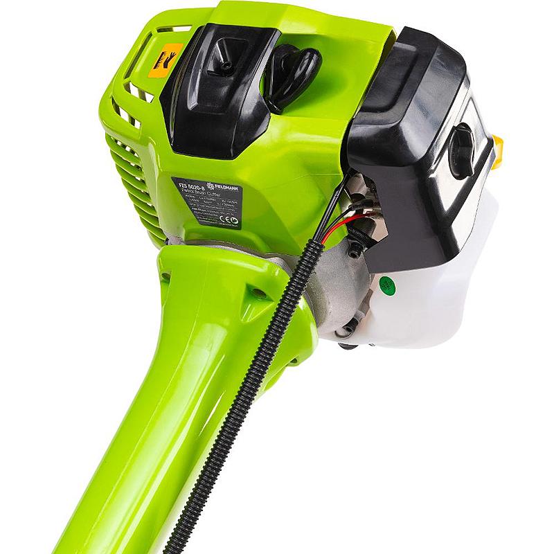 Výkonný benzínový křovinořez Fieldmann s dvoutaktním motorem, odolnou konstrukcí a třízubým ocelovým kotoučem.