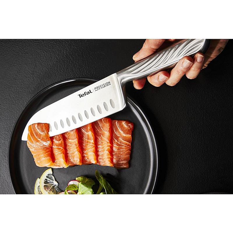 Santoku nůž Tefal s délkou čepele 16,5 cm.