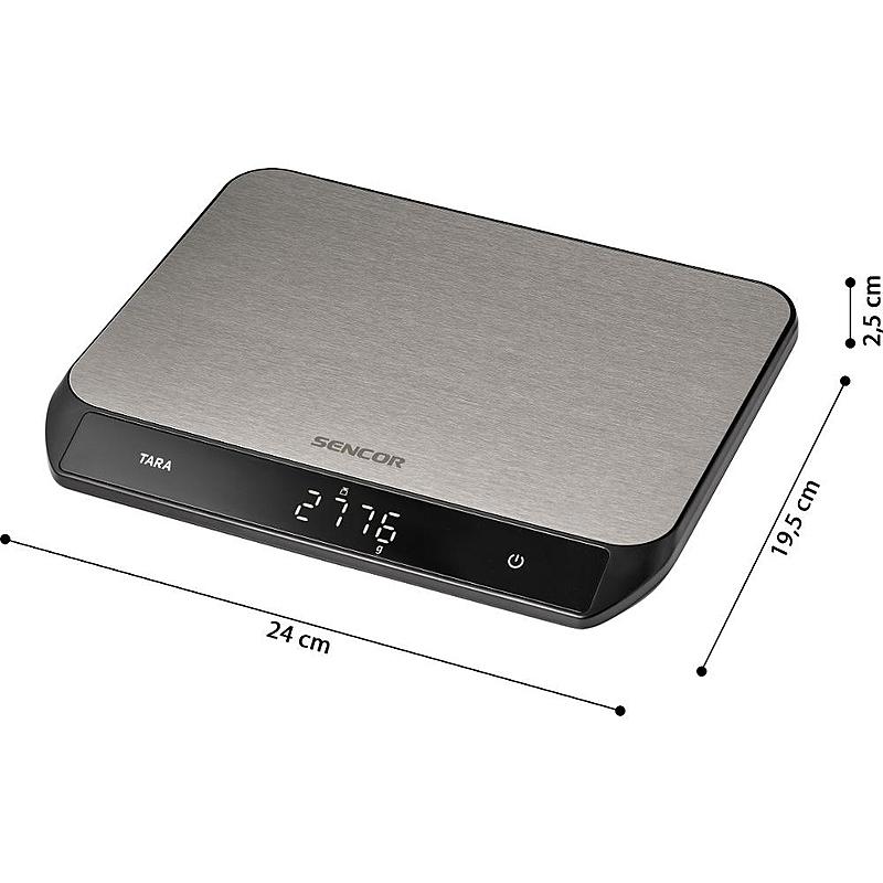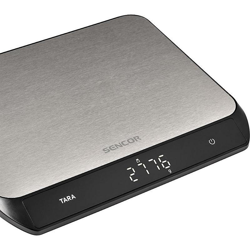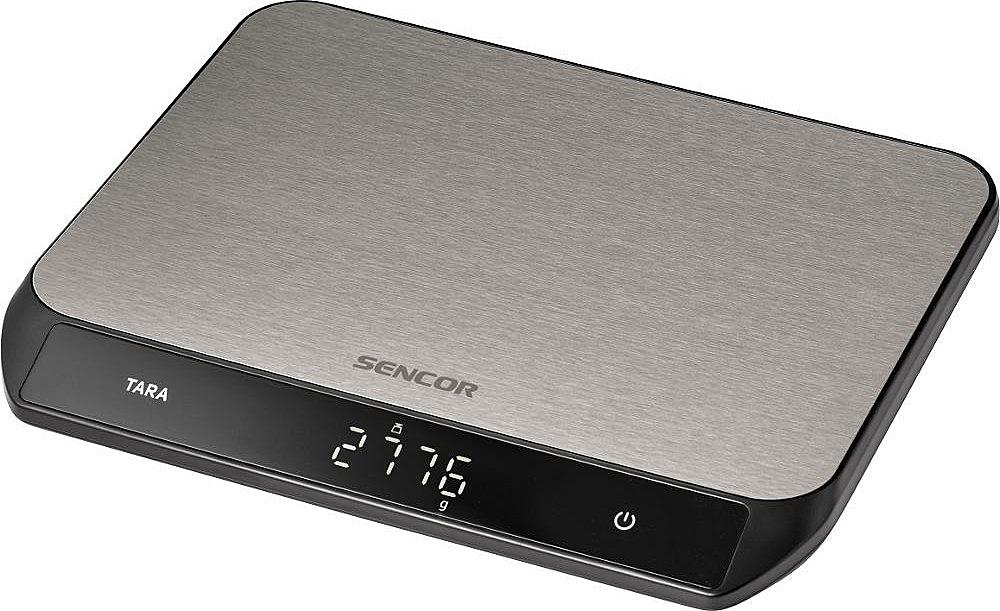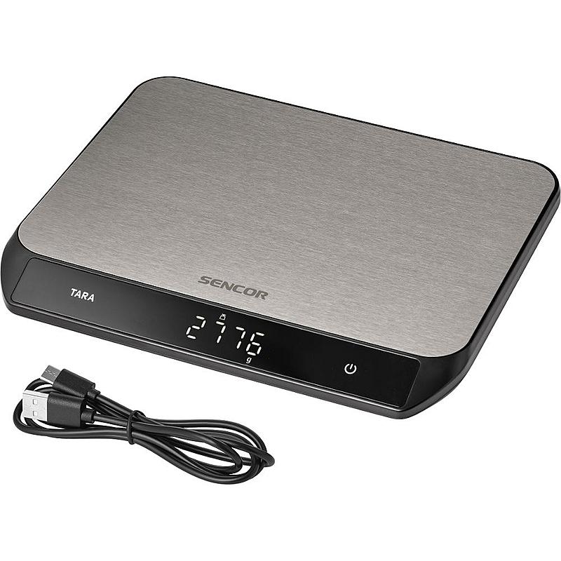 Kuchyňská váha Sencor s funkcí dovažování a váživostí do 20 kg. Dobíjecí baterie přes USB a dotykové ovládání.