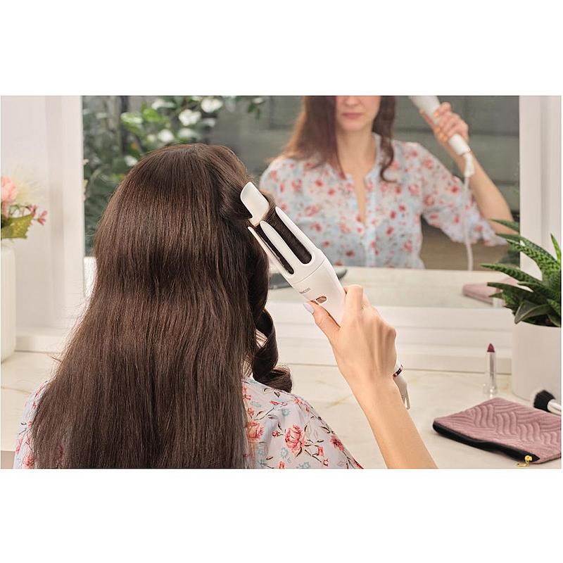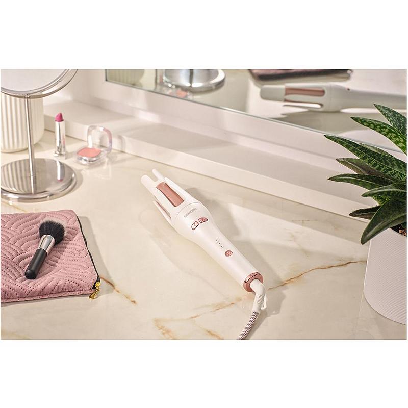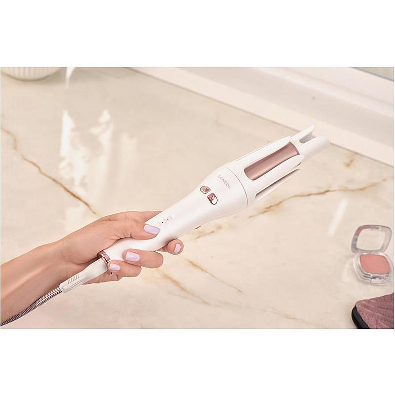 Automatická kulma Sencor s iontovou funkcí, automatickým otáčením bez zacuchání, keramickým povrchem a bezpečnostním vypnutím.