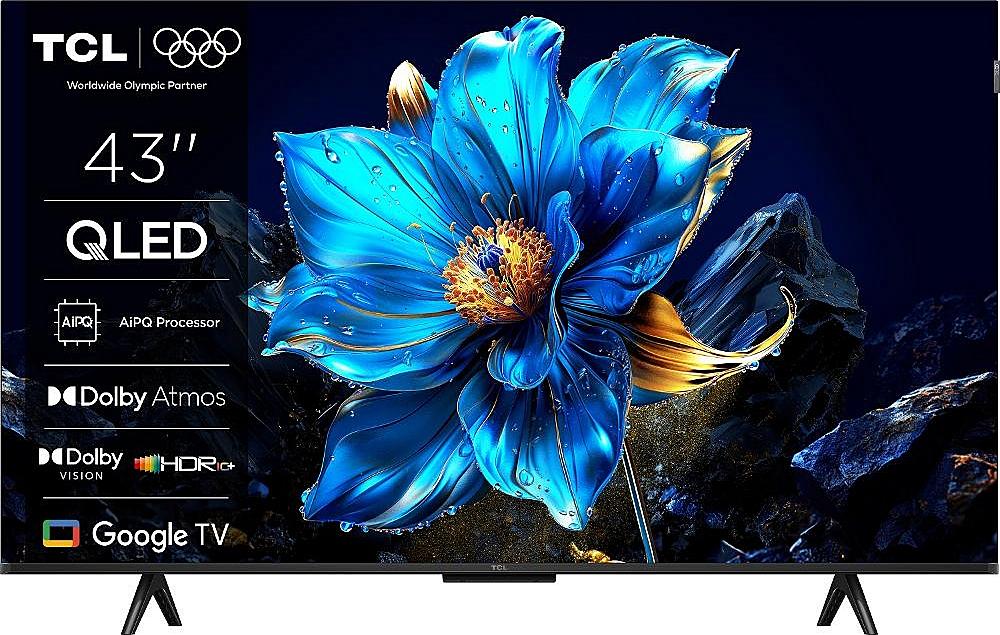 Chytrý QLED televizor TCL s úhlopříčkou 108 centimetrů, funkcí Hbb TV a rozlišením 4K Ultra HD.
