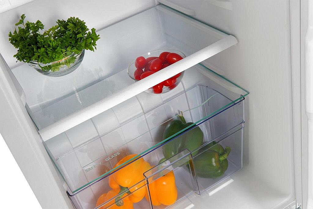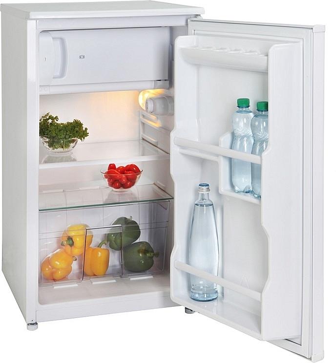 Chladnička ECG s mrazicí přihrádkou o objemu 8 litrů, LED osvětlením a možností změny směru otevírání.