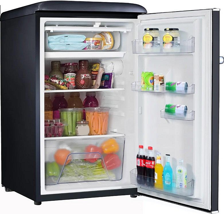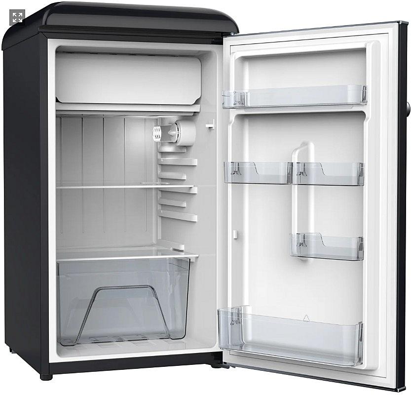Chladnička s mrazícím boxem Guzzanti v retro designu s vnitřním osvětlením a celkovým objemem 95 l.