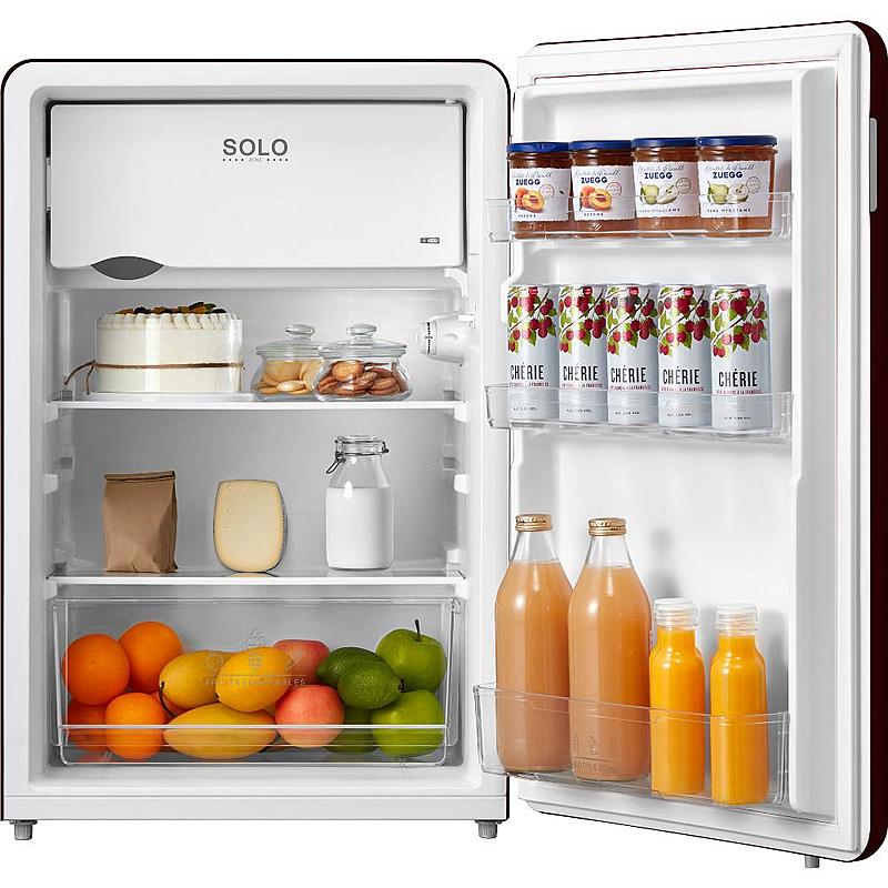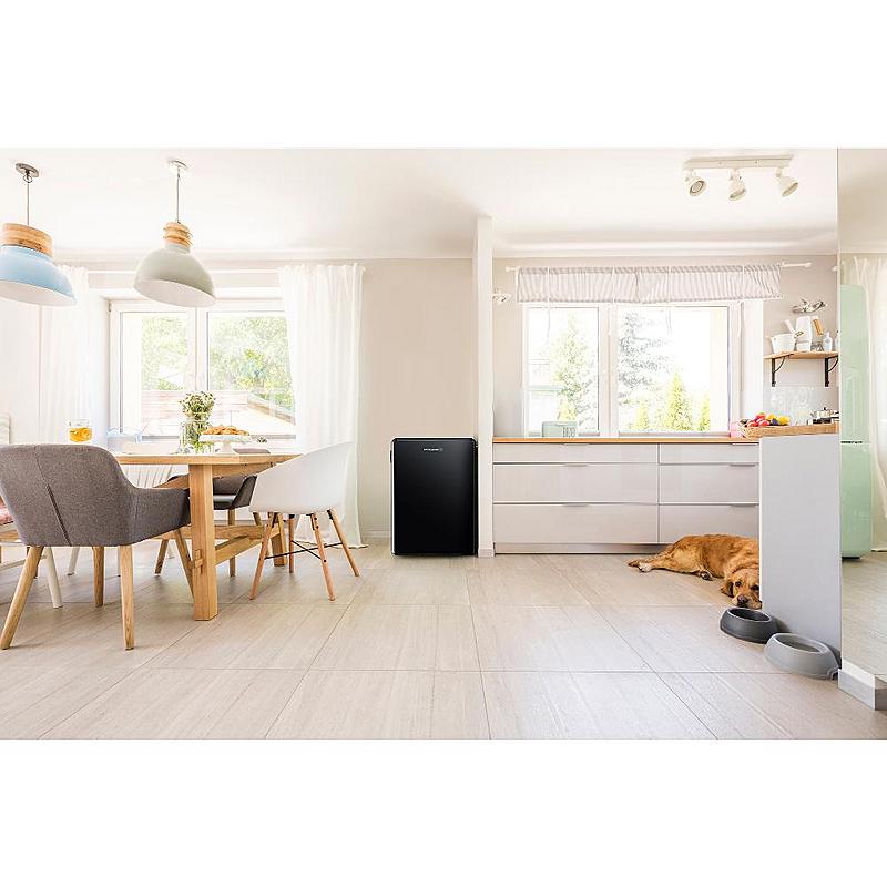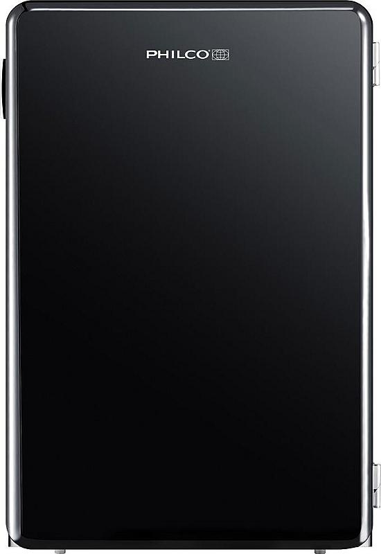 Kompaktní stylová chladnička Philco s mrazícím boxem, LED osvětlením a samozavíracími panty. Celkový objem 116 l a možnost otočení dveří.