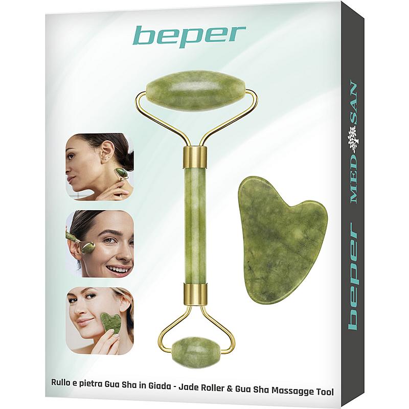 Masážní váleček Beper s jadeitovými válečky a dvouhlavým rollerem.