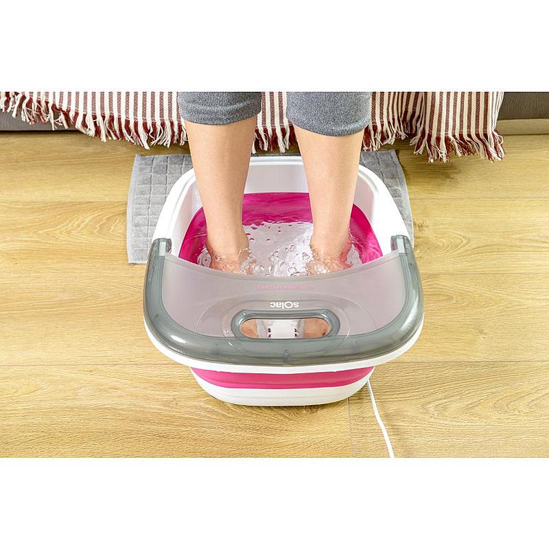 Masáž nohou Solac s objemem až 6 l, možností složení a funkcí bublinek, vibrací a infračerveného světla.