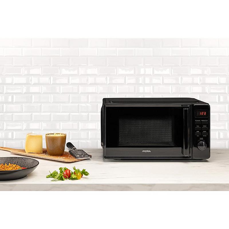 Mikrovlnná trouba Mora s displejem, elektronickým ovládáním a časovačem. Objem 20 l a přednastavené programy.