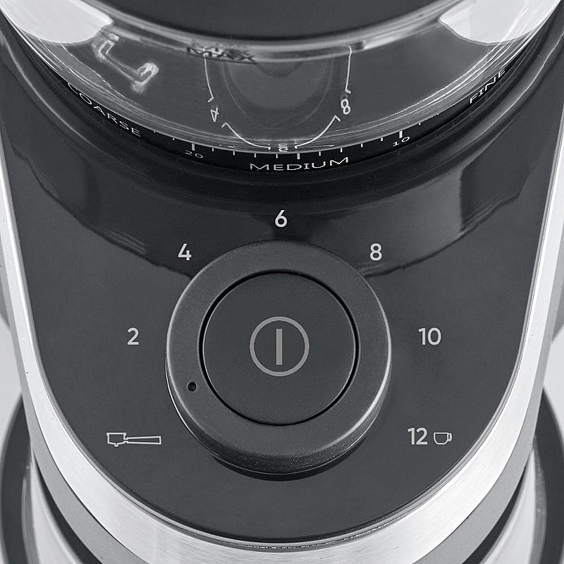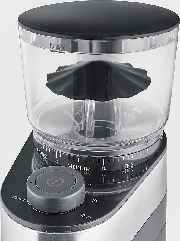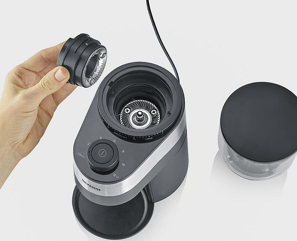 Kávomlýnek Severin s nastavením jemností mletí a kapacitou 12 šálků.