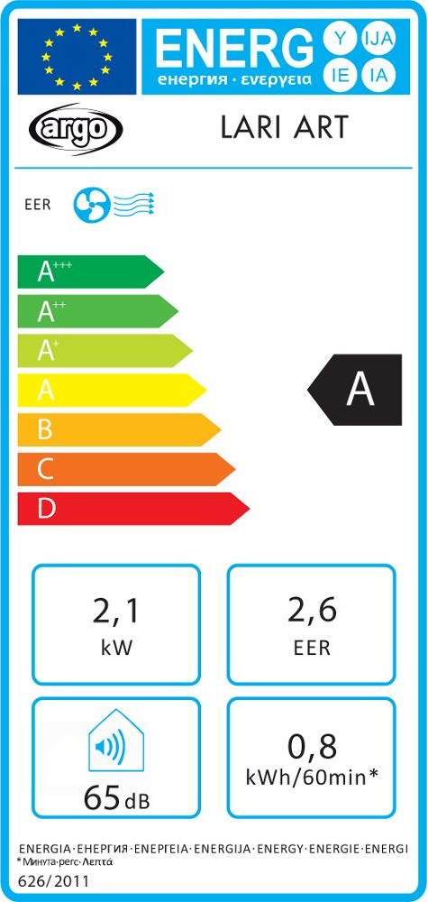 Mobilní klimatizace Argo s digitálním ovládacím panelem, LED displejem a funkcí chlazení, větrání a vysoušení vzduchu.