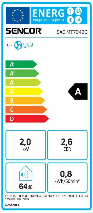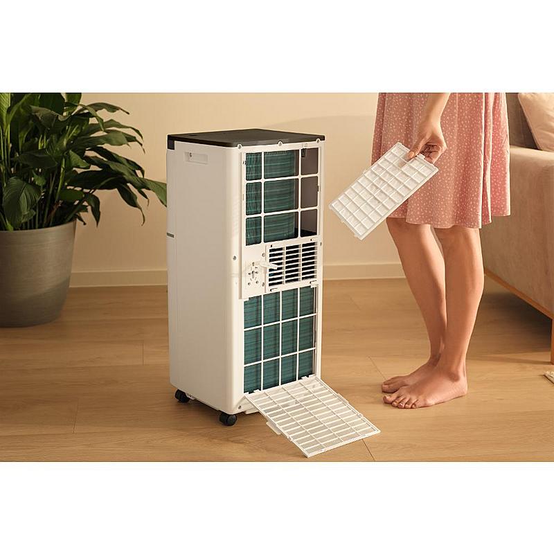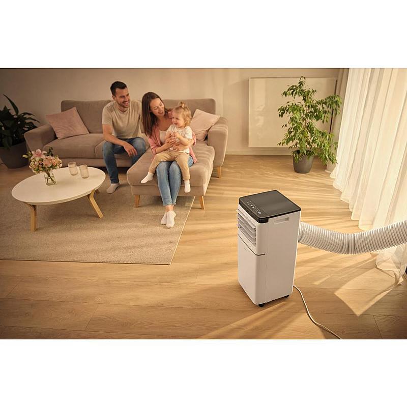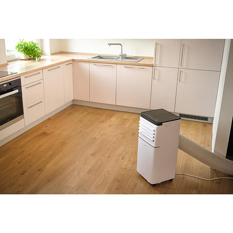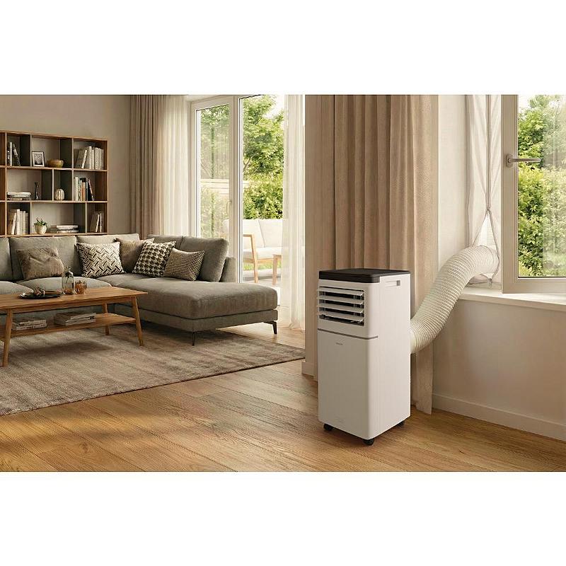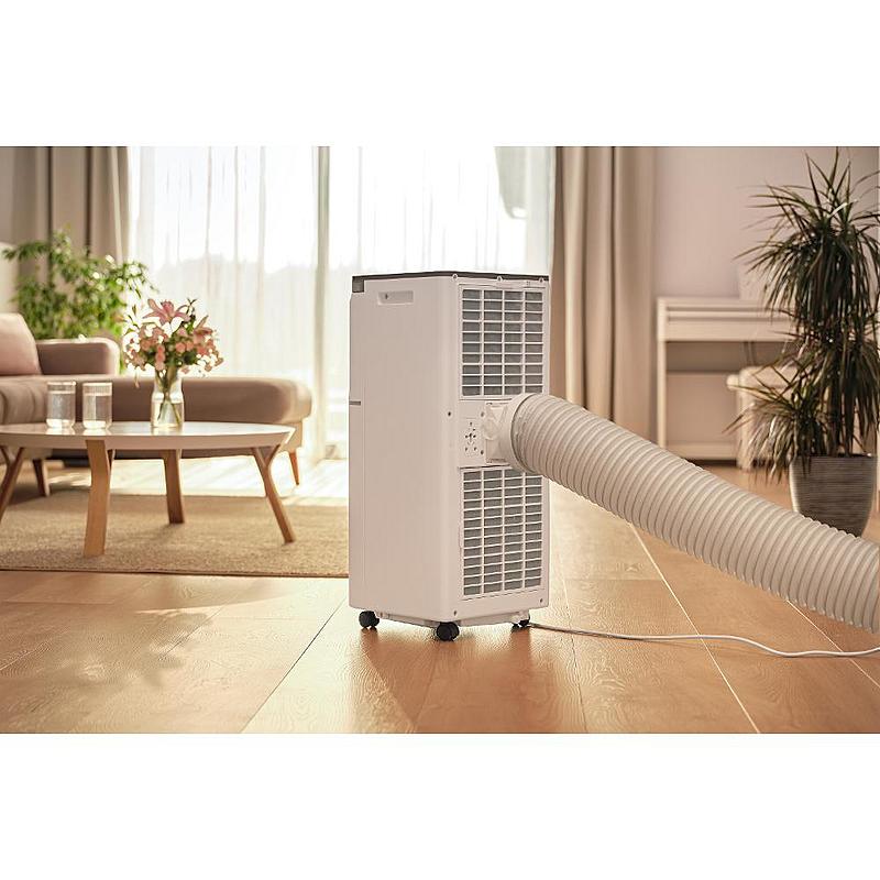 Mobilní klimatizace Sencor s možností ovládání přes aplikaci i dálkovým ovládáním, výkonem 7000 BTU/h a třemi režimy.