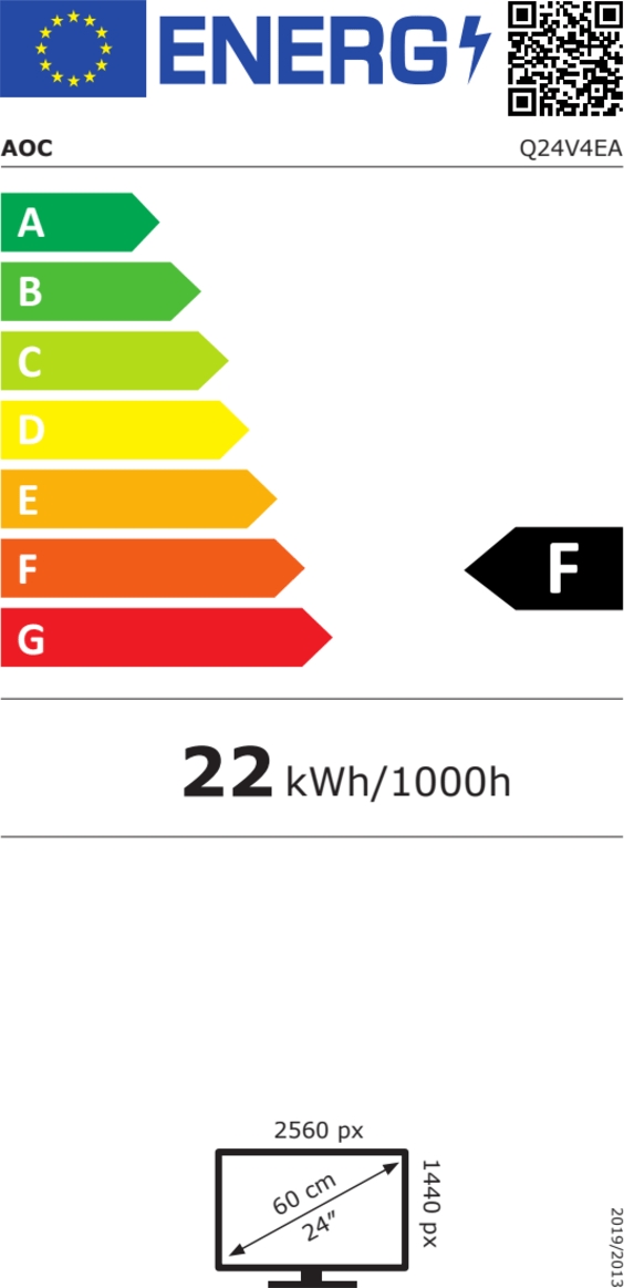 Monitor AOC s úhlopříčkou 23,8 palců, energetickou třídou F a HDMI.