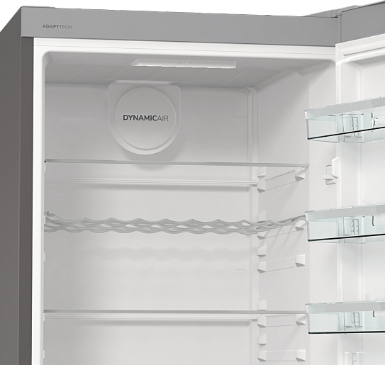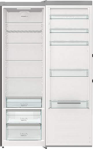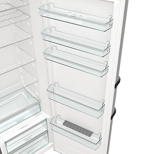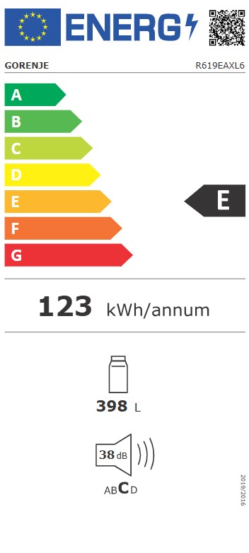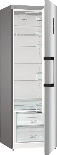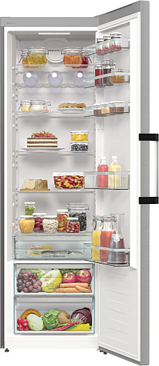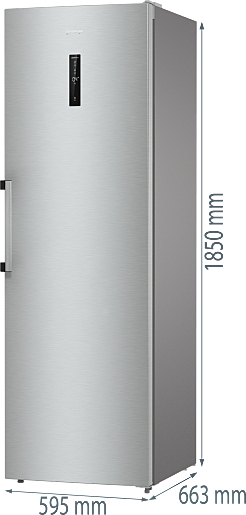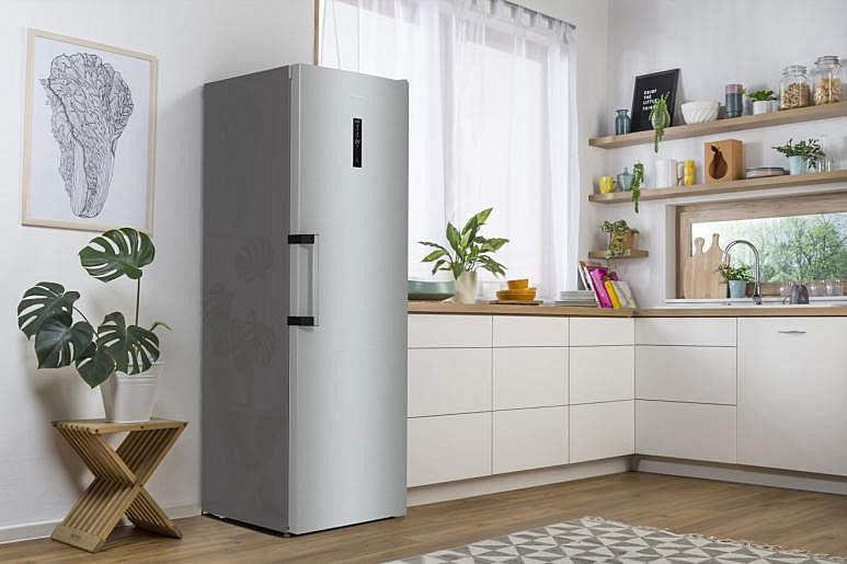 Monoklimatická lednice Gorenje s LED osvětlením, funkcí super chlazení a elektronickým ovládáním. Celkový objem 398 l a automatická regulace vlhkosti.