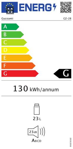 Monoklimatická chladnička Guzzanti s termostatem. Nulová hladina hluku a celkový objem 23 litrů.