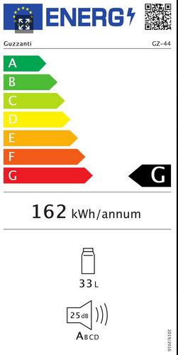 Termochladnička Guzzanti s LED osvětlením, možností změny směru otevírání a celkovým vnitřním objemem 33 litrů.